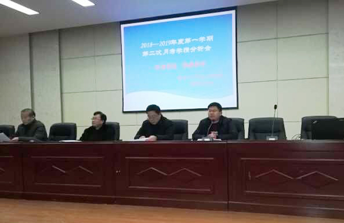 12月19日,亳州十八中高二年级召开月考考情分析会,校长吴辉、副校长孙德兴参加会议,年级主任何立宏主持会议。