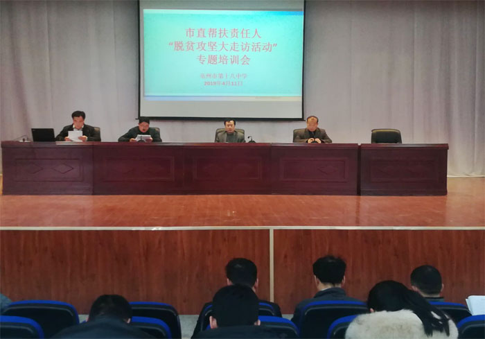 4月11日,亳州十八中在学校至美厅召开帮扶责任人“脱贫攻坚大走访活动”专题培训会,校长吴辉、副校长孙德兴参加会议。