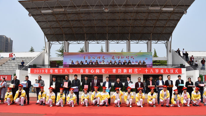 4月30日,亳州十八中举行了2019届高三年级十八岁成人礼。