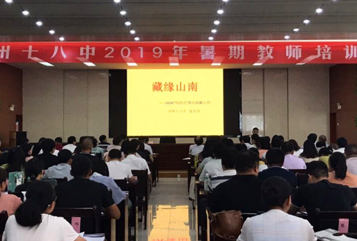 8月26日,我校教师张官升在至真厅向学校全体教职工分享了自己2018年“组团式”教育援藏心得。