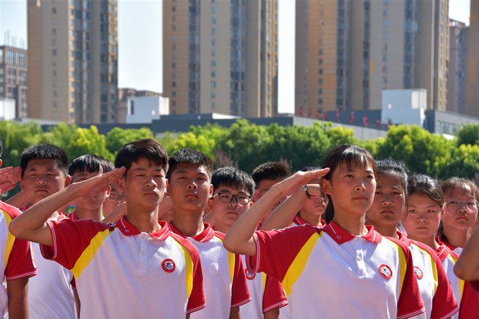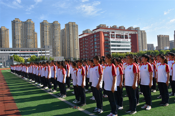 在庄严的国旗下、嘹亮的国歌后,教官们进行了精彩的列队表演,赢得了阵阵热烈掌声。接着,一千多名高一新生穿着统一的服装,排着整齐的方队,以饱满的精神展示了齐唱军歌、四面转法、齐步走、正步走、跑步走以及军体拳等基本军事科目。喊着响亮的口号,迈着整齐的步伐,同学们稚嫩的面容上多了份沉稳与坚毅,英姿飒爽的身影里,彰显了对未来生活的自信,他们用行动上交了高中生活第一课的答卷。