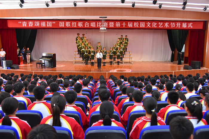 9月30日,我校在学校至美厅隆重举行红歌合唱比赛,歌颂伟大祖国。高一年级全体学生参加比赛。