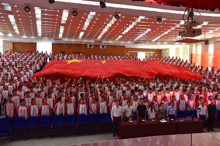 活动伊始,整齐嘹亮的国歌声中,一面鲜艳的巨型五星红旗在学生中缓缓流动,迅速营造出浓郁的氛围。