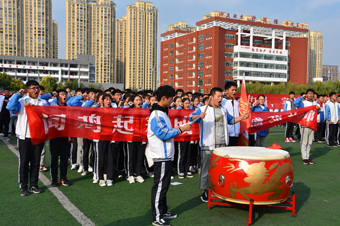 10月20日,我校高二年级全体理科班师生在学校操场隆重举行班级挑战活动,激励学生奋发向上。年级副主任牛超群主持活动。