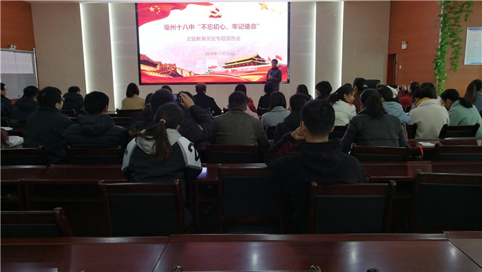 11月20日,亳州十八中组织全体党员教师,在至真厅举行“不忘初心、牢记使命”主题教育党史专题报告会。校党总支副书记、副校长孙德兴参与学习。