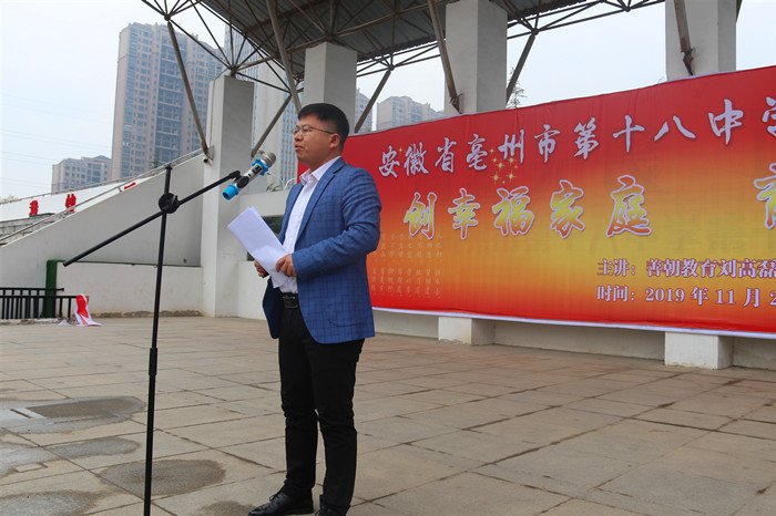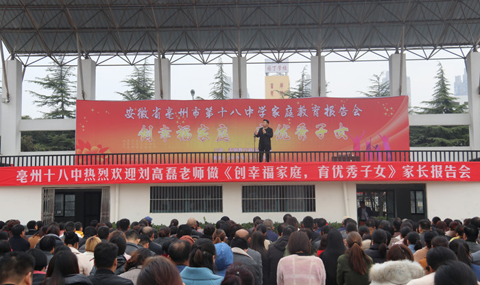 11月23日,我校高三年级邀请善朝教育金牌讲师刘高磊来校,为家长们开设一场以《创幸福家庭 育优秀子女》为主题的讲座。政教处主任、高三年级主任何立宏致开幕词。