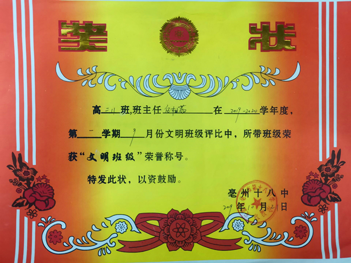 近日,亳州十八中高二(11)班团支部荣获市五四红旗团支部荣誉称号。