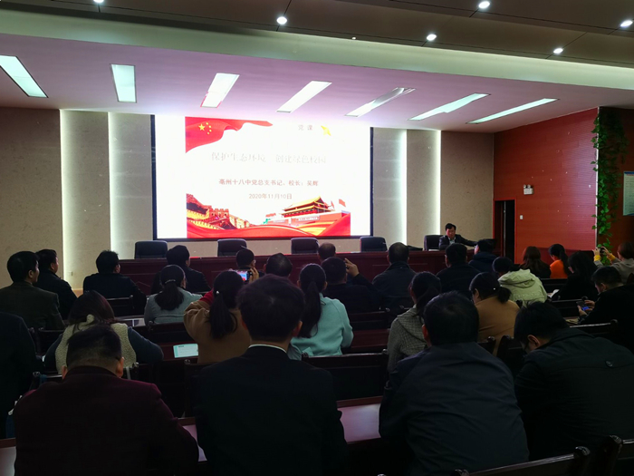 11月10日,亳州十八中党总支按照“一课一片一践”要求,结合精准脱贫、生态环境?;ず偷晨位疃?,扎实有序开展主题党日活动。