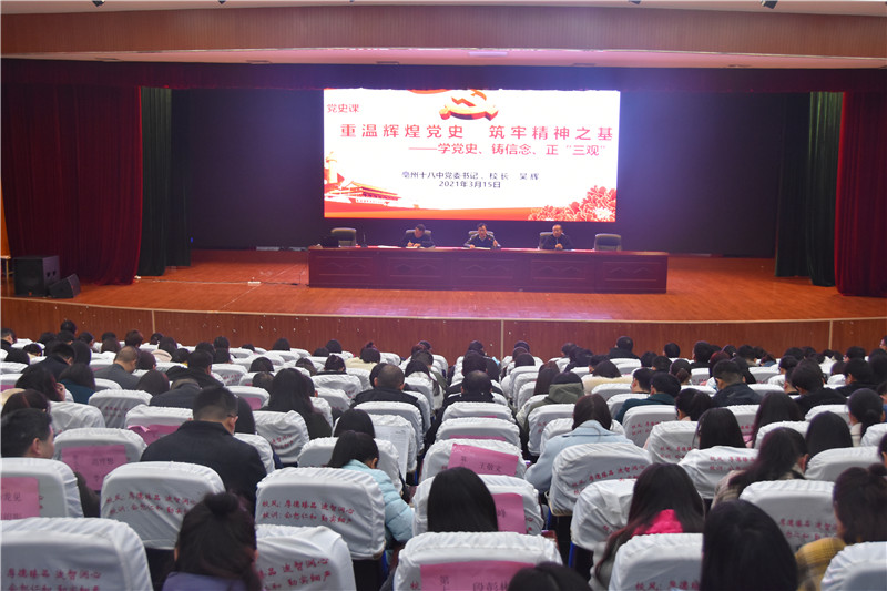 3月15日,亳州十八中党委书记、校长吴辉在全体教职工政治学习会上,分享了一堂生动深刻的专题党史课,教育引导广大教师学史明理、学史增信、学史崇德、学史力行。