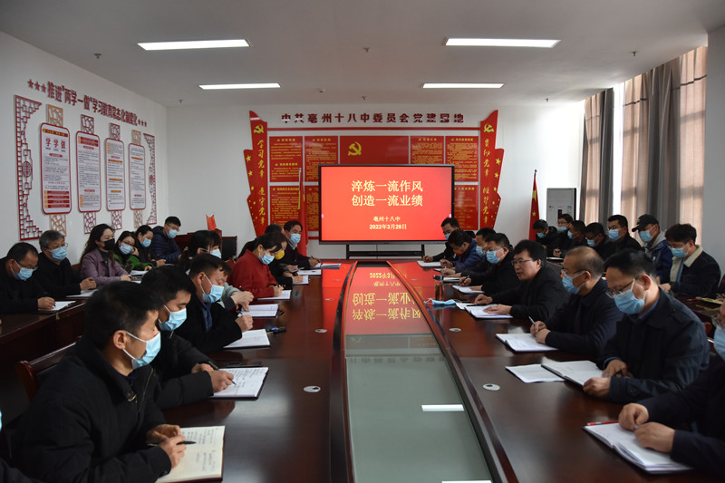 3月28日,亳州十八中党委在综合楼召开深化干部作风建设扩大会议。党委书记、校长吴辉主持会议并作“淬炼一流作风,创造一流业绩”主题讲话,全体党委、纪委委员、各处室、各年级负责人参加会议。
