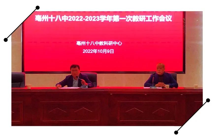 10月9日下午,亳州十八中2022-2023学年第一次教研工作会议在学校至真厅召开,亳州十八中党委书记、校长吴辉出席了会议。