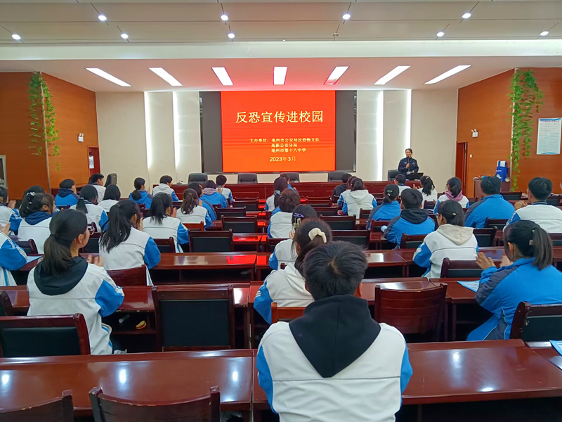 3月15日下午,亳州十八中联合亳州市公安局反恐怖支局和高新公安分局在学校举行了一场反恐宣传进校园活动。