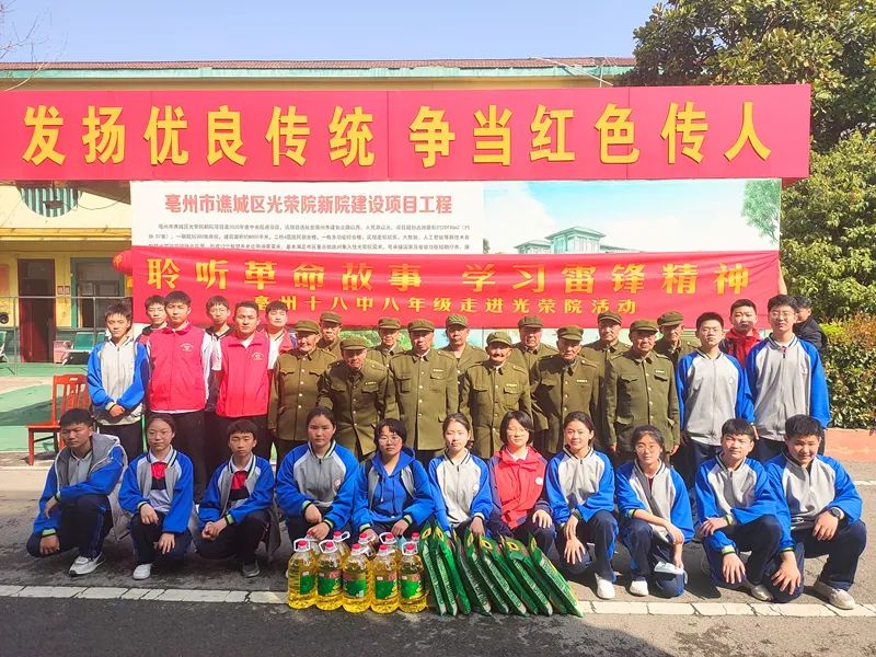 3月9日上午,亳州十八中学子在校团委的组织下走进光荣院开展“聆听革命故事,传承雷锋精神”志愿服务活动。