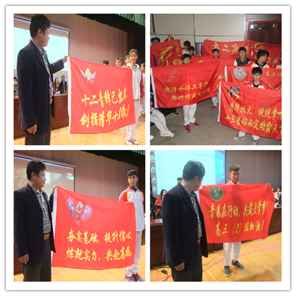 接着是全体教师宣誓、班主任宣誓、各备课组宣誓,以及学生宣誓,壮志豪情声震南校。听到自己敬爱的老师那情真意切的誓言,很多学生留下了感动的泪水。而各班宣誓再次掀起了誓师动员大会的高潮。高亢的誓言迸发出努力的志向,紧握的拳头体现了大家对高考成功的向往,展示出舍我其谁的英雄气概与担当。