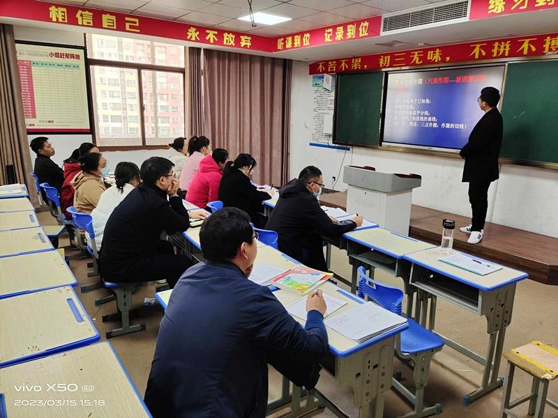 3月15日,亳州十八中初中部数学组进行了中考复习研讨活动,活动由九年级备课组长冀荣华主持,初中部三个年级的全体数学老师参加了本次活动。