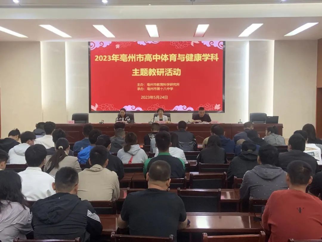 5月24日,全市高中体育与健康学科主题教研活动在亳州十八中举行。市级体育教研专家组成员、各县区体育教研员及高中体育教师代表近100人参加了此次活动。