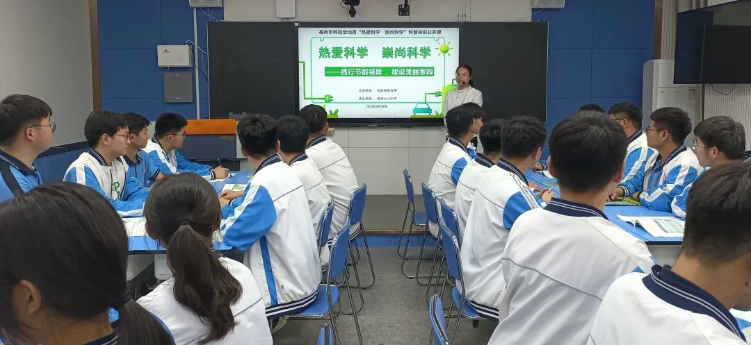 5月29日,在亳州市教育局主办的科技活动周之“热爱科学 崇尚科学”科普知识公开课活动中,亳州十八中地理教师徐小燕为同学们带来一场以“践行节能减排,建设美丽家园”为主题的公开课。