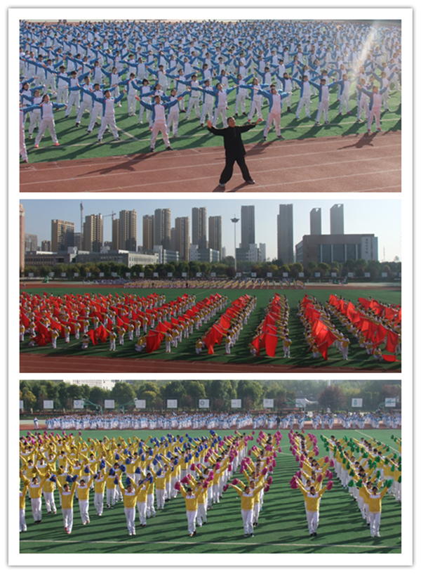接下来是三场场面宏大的文艺汇演,“青春校园”和“激情校园”充分展现了学生们的青春活力和澎湃激情,“古韵校园”以独具特色的五禽戏展示了亳州养生文化。精彩的表演引发全场观众一轮又一轮的热烈掌声,也激发起大家对运动的向往和对生活的热爱。