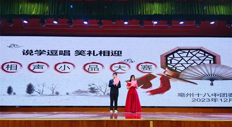 为了丰富校园文化艺术生活,弘扬传统相声小品艺术,发扬传统文化精神,12月14日下午,亳州十八中在至美厅举办第十四届校园文化艺术节系列活动之“说学逗唱 笑礼相迎”相声小品大赛。