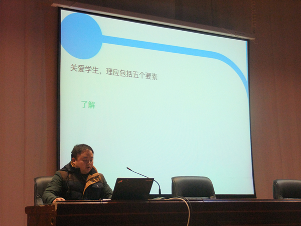 百年大计,教育为本;教育大计,教师为本。王老师的讲座紧扣“关爱学生”这一主题逐步展开,从“何为关爱学生”,“如何关爱学生”两大方面入手,结合身边同事的具体感人事例,对教师在教育教学中如何关爱学生进行了全面深入的解读。