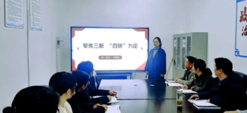 高一备课组长王蕊蕊老师结合自身教学实践与外出学习的收获,以《聚焦三新 四研为定》为题,围绕“研备课、研课标、研真题、研课型”四个具体角度谈到作为政治教师要不断更新自己的教学理念,发挥集体备课的力量,提升自己的专业素养;要用好课标,抓好课堂,研好课型,推进课改,提升课堂效率;要认真分析研究高考真题,做到精准备考。讲座的最后,她说道:“时代在变迁,思政课堂应该回应时代之变。作为新时代的思政课教师应该不断锤炼课堂艺术、提升课堂品味、增强课堂吸引力,让学生真实感受到思政课的魅力,实现立德树人与教学质量双提升”。