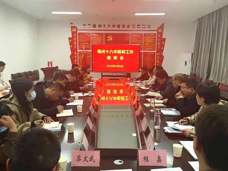 4月6日,亳州十八中召开教研工作座谈会,凝心聚智,促力学校发展。校党委书记、校长李俊主持会议并讲话,校党委委员、各处室负责人、各学科教研组长参加会议。