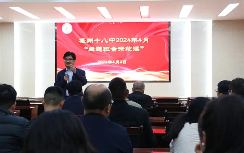 校党委书记、校长李俊指出亳州十八中主题班会课的现状,如何上好主题班会课是一个探索的过程,知是行之始,行是知之成。“非知之艰,行之惟艰”,班主任们只有知行合一,去尝试、研究,从学中感悟,从做中反思,取长补短,才能更好地实现主题班会课的育人目标。