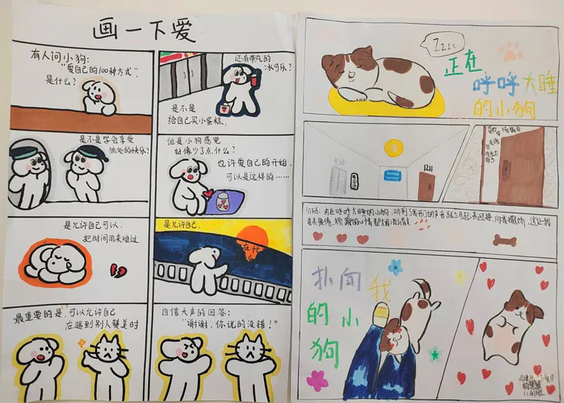 “请画一下爱”通过绘画的形式,让学生用多彩的画笔记录生活中爱的画面。学生通过绘画展示了自己丰富的创造力和细腻的内心世界,让他们更加深刻地感受爱,理解爱。
