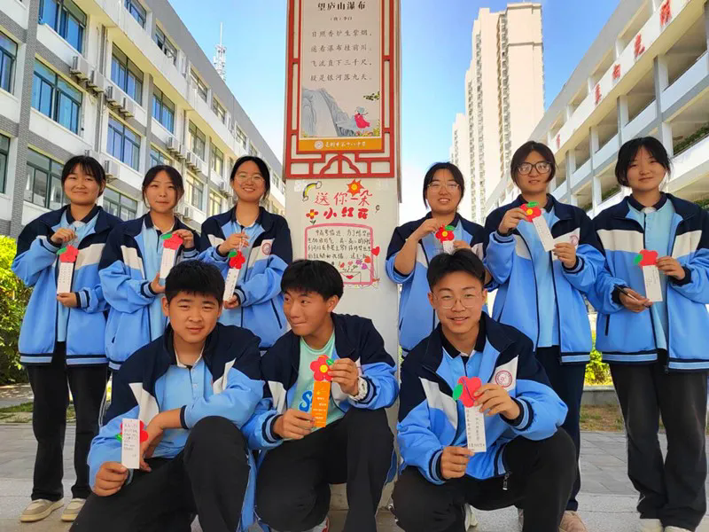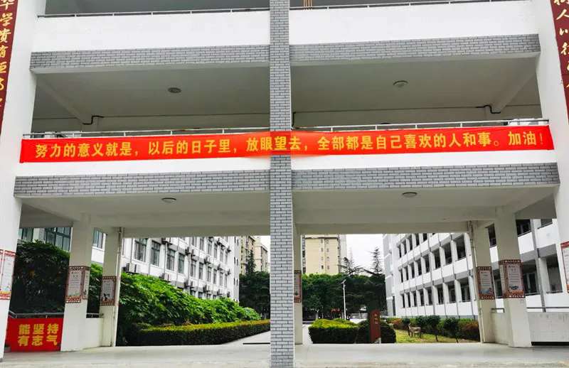 在操场、教学楼等醒目的地方悬挂宣传条幅,“每一处风景都是生命的驿站,用乐观的心情看待万物,心则如山花般烂漫。”“努力的意义就是,以后的日子里,放眼望去,全部都是自己喜欢的人和事。加油!”这些充满能量的话语,滋养着学生的心灵。