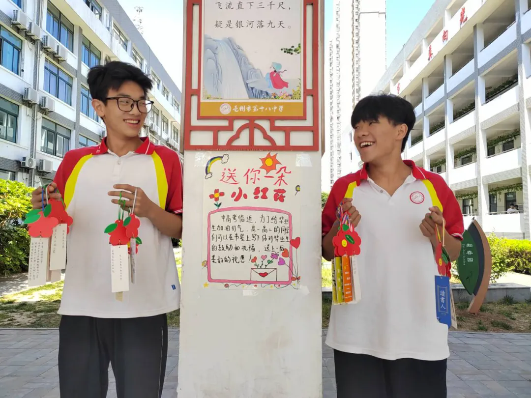 中高考临近,为了给毕业生加油鼓劲,学生发展指导中心举行了“送你一朵小红花”活动。活动分两个阶段,5月28日,学校老师和非毕业班学生在“小红花”贺卡上写下对毕业生的祝福与鼓励;5月30日上午,指导中心的老师提前把祝福卡挂在香樟大道两侧。活动伊始,毕业班的同学飞奔而至,兴高采烈地取下了自己喜爱的贺卡,收下来自老师和学弟学妹们的祝福。毕业班的学子们将带着这些暖心的祝福奔赴考场。祝愿他们将鲲鹏之志挥毫于纸间,龙门一跃,得偿所愿,为青春再添一份灿烂回忆!