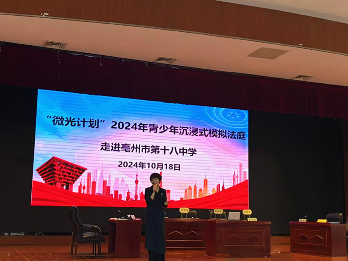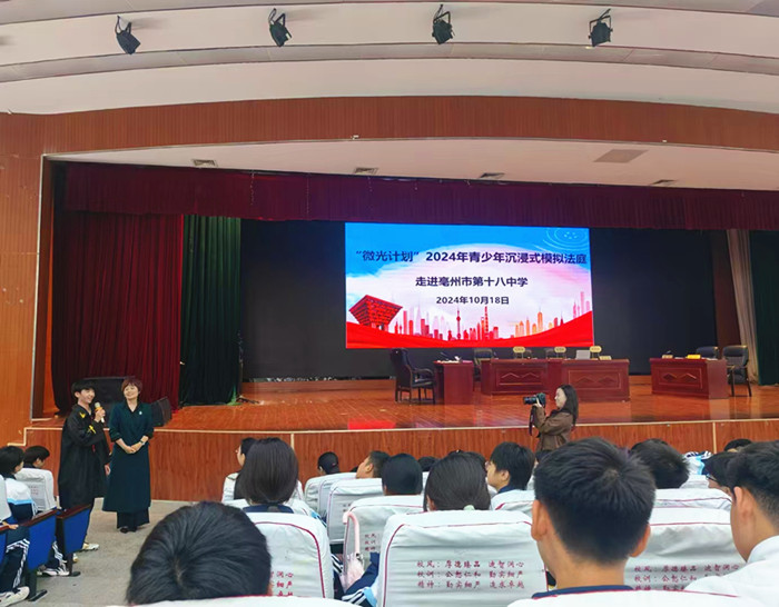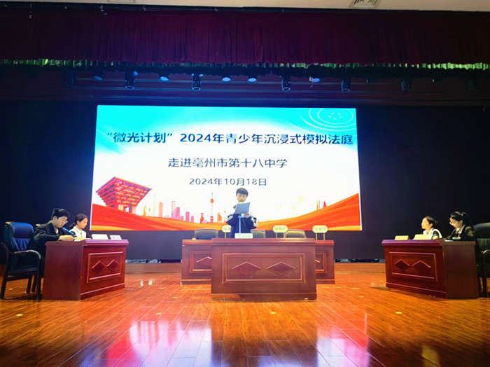 【五育并举】让青春与法同行——亳州市“微光计划”之青少年沉浸式模拟法庭活动走进亳州十八中