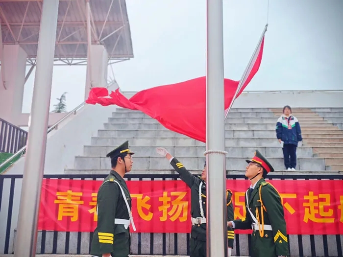 仪式伊始,国旗护卫队的同学们迈着整齐有力的步伐走向升旗台,他们身姿挺拔,神情庄重。当激昂的国歌奏响,鲜艳的五星红旗冉冉升起,全体师生面向国旗行注目礼,高唱国歌,现场气氛庄严肃穆。