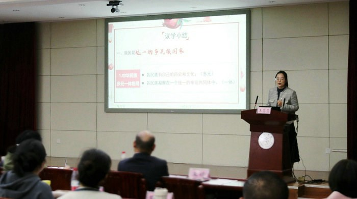 安徽省青年教育教学能手、省优质课大赛一等奖获得者、亳州市第十八中学高中教师王蕊蕊主讲了《民族区域自治制度》示范课,她通过问答、互动、文图展示、议学小结等方式,在有限的时间内上了一堂完整的高质量示范课。