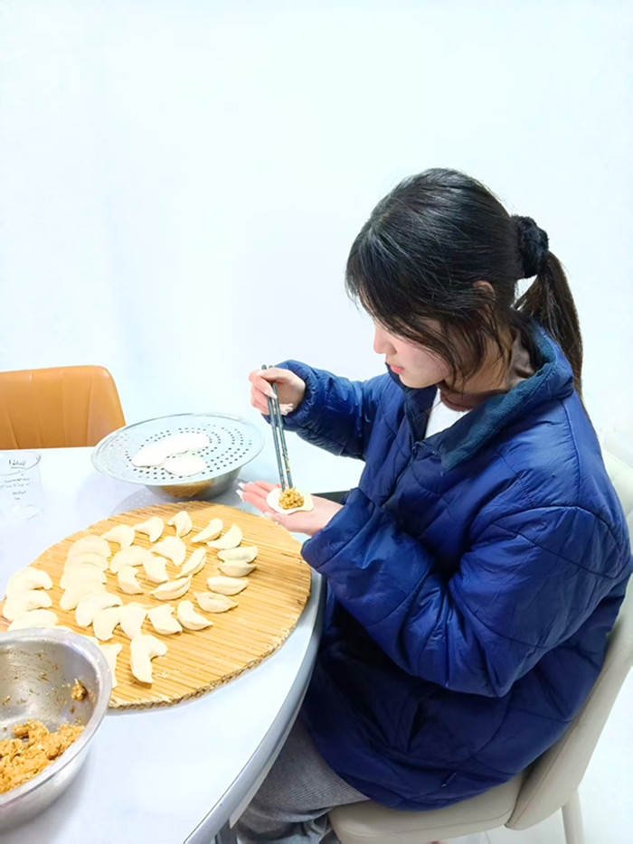 在准备年夜饭时,同学们也纷纷洗手挽袖,大显身手。在家长们的指导下,调馅料、擀面皮、包饺子,学生们虽然手法略显生疏,但一个个干劲十足,包出的饺子也有模有样,充满了浓浓的年味。