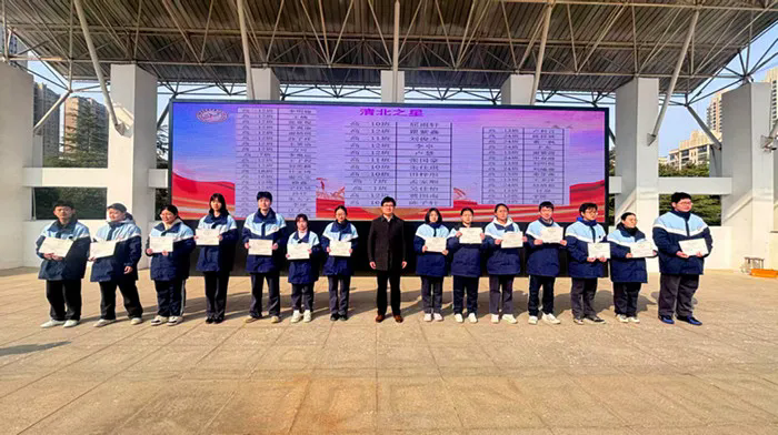 2月25日上午,亳州十八中高二年级在学校操场举行全市统考表彰大会。大会由年级副主任徐永飞主持,校长李俊出席此次大会。