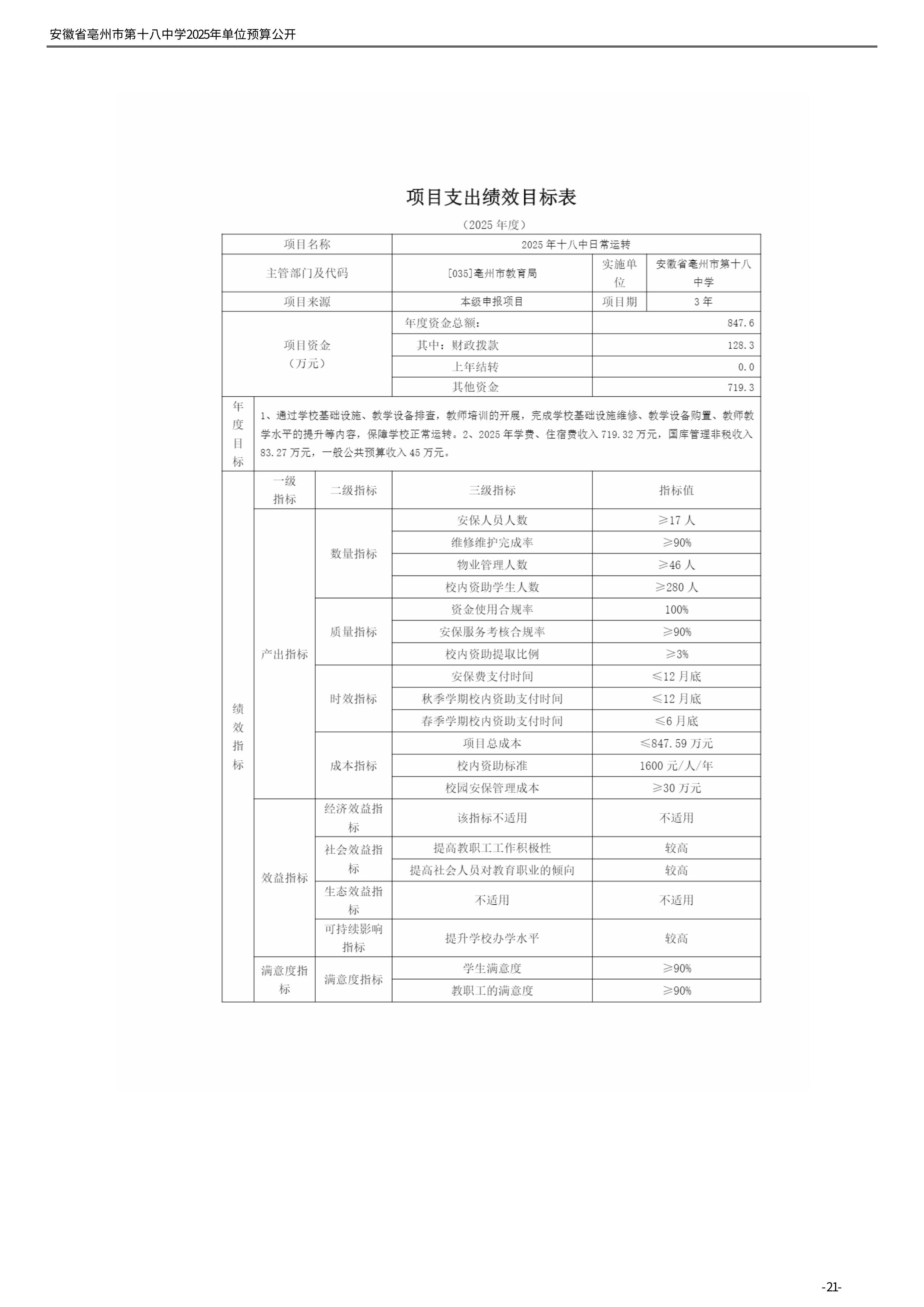 亳州市第十八中学2025年预算公开 编辑:管理员 发布时间:2025-03-07 19:32 浏览次数:1535次 附件:安徽省亳州市第十八中学2025年度绩效目标项目清单.pdf 附件:2025年度安徽省亳州市第十八中学单位预算公开.pdf 分享到: