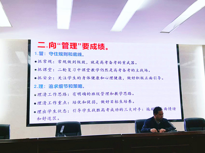 年级主任张官升对全体师生在前期备考阶段付出的努力和取得的阶段性成果给予了充分肯定。他指出,此次月考是高考前的一次重要检验,是发现问题、解决问题的绝佳契机。在接下来的冲刺阶段,全体教师要进一步激发学生的内驱力,挖掘学生的潜力,及时发现并疏导学生的焦虑情绪,帮助他们以最饱满的精神状态、最坚定的信念迎接高考挑战。