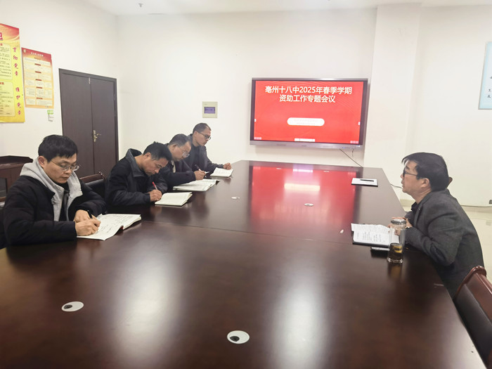3月13日,亳州十八中学生资助中心组织召开2025年春季学期资助工作专题会议。校专职督学王瑞,资助中心全体工作人员,各年级资助对接人员参加会议,会议由资助中心负责人王珂主持。