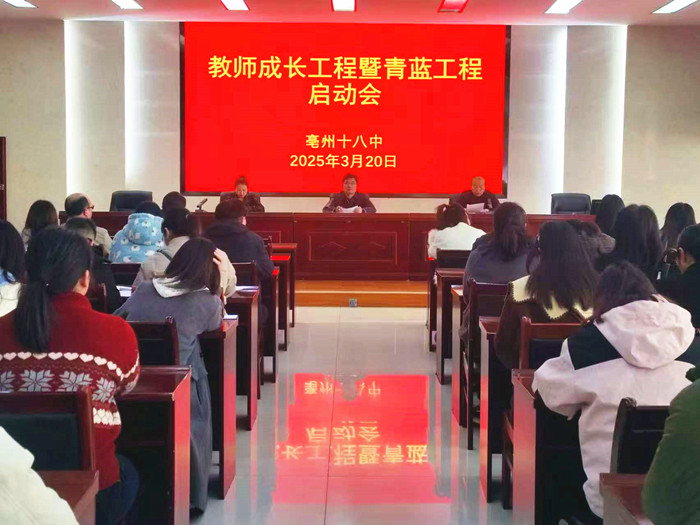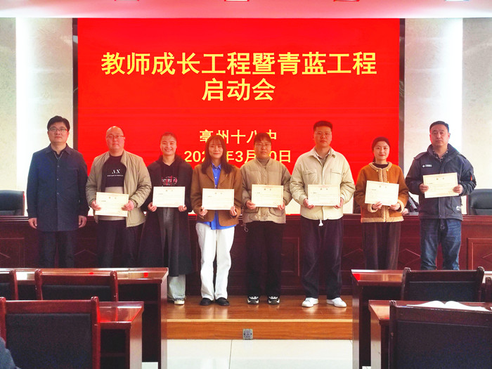 3月20日,亳州十八中召开“教师成长工程”暨“青蓝工程”启动会,校领导与96名来自不同学科、年级的结对师徒参与会议,共同开启教师培养的“加速键”。