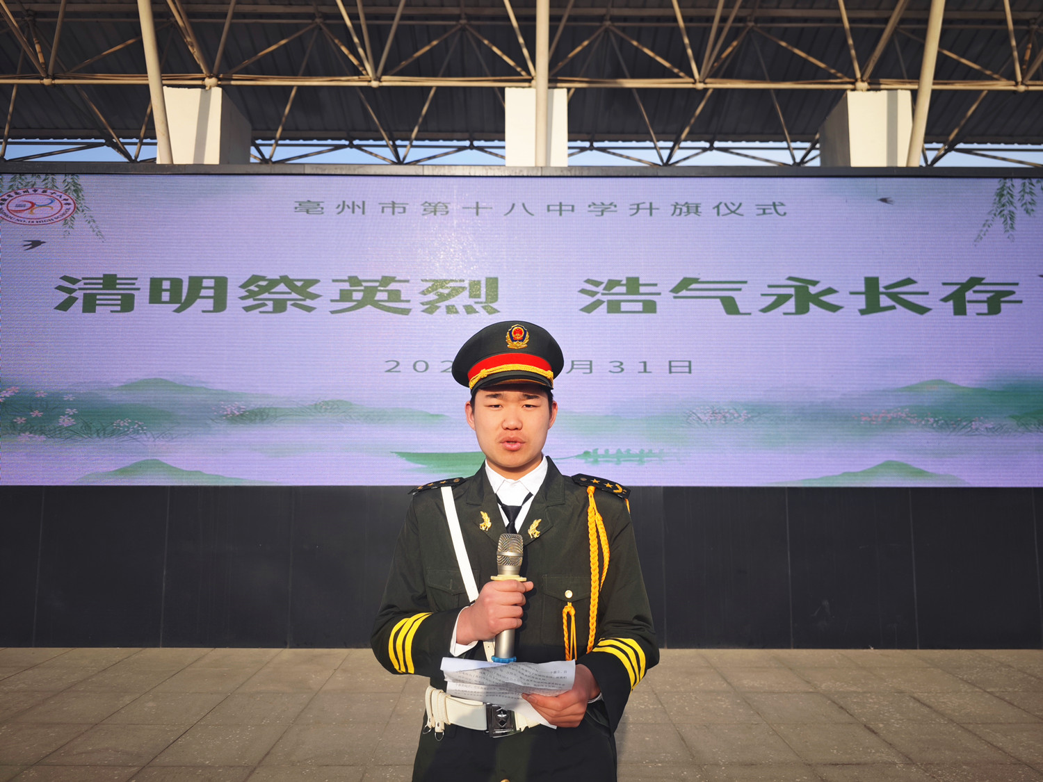 【五育并举】亳州十八中举行清明节主题升旗仪式