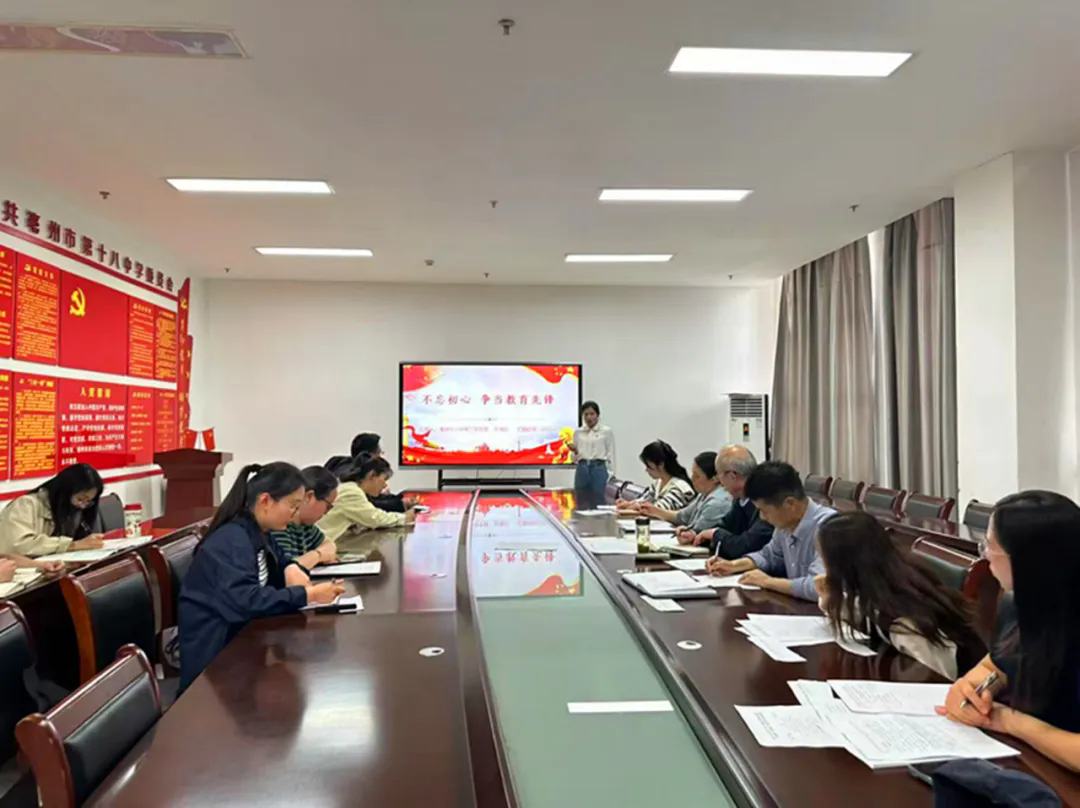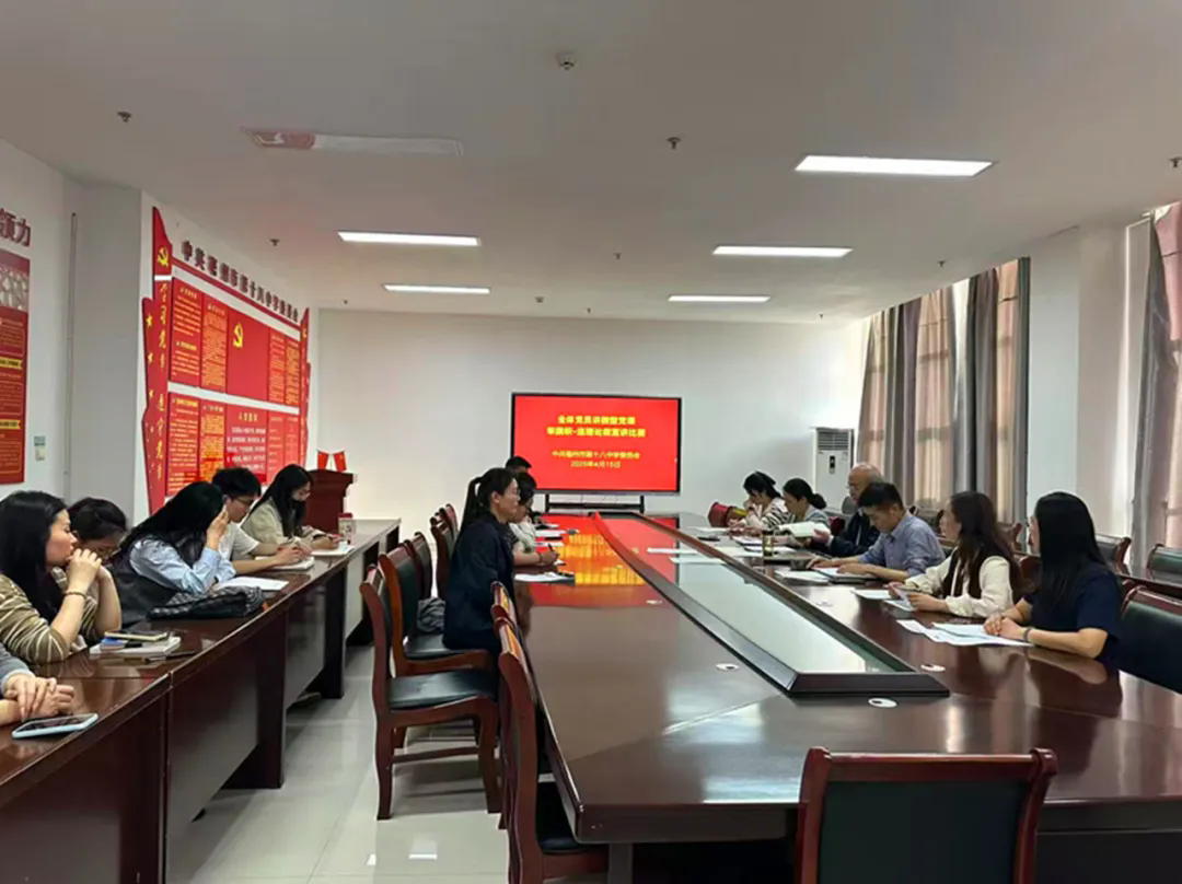 4月15日下午,亳州十八中在综合楼五楼党委活动室举行2025年“全体党员讲微型党课‘举旗帜·送理论’”微宣讲比赛。活动由校党建办主任李明主持,于桃同志作点评,校党委书记张伟亚出席并指导讲话。