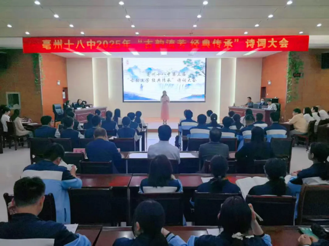 此次活动不仅搭建了师生展示才华的平台,更让经典诗词的魅力浸润校园。亳州十八中将继续以“古韵流芳·经典传承”为纽带,让优秀传统文化在新时代焕发新生机,激励全体师生以文化自信为帆,以经典传承为桨,在青春赛道上书写壮丽篇章。(供稿:于小龙)
