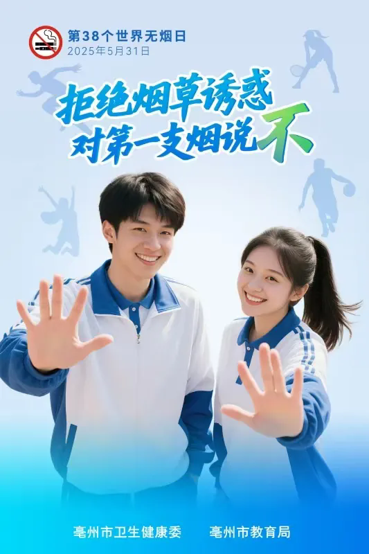 2025年5月31日是第38个世界无烟日,今年的主题是“拒绝烟草诱惑 对第一支烟说不”。根据《中国吸烟危害健康报告2020》,我国有超过3亿的吸烟者,7.4亿人受到二手烟的危害,每年有120万人因烟草相关疾病死亡。在此,向广大市民发出如下倡议。