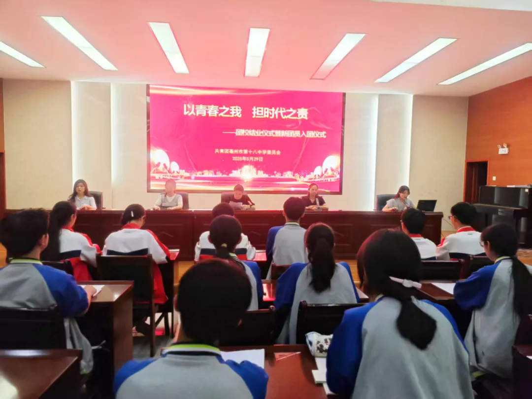 5月29日,亳州十八中在至真厅举行团校结业仪式暨新团员入团仪式。仪式由校团委副书记叶金主持,校团委负责人陈萍和党员教师代表出席了本次会议。