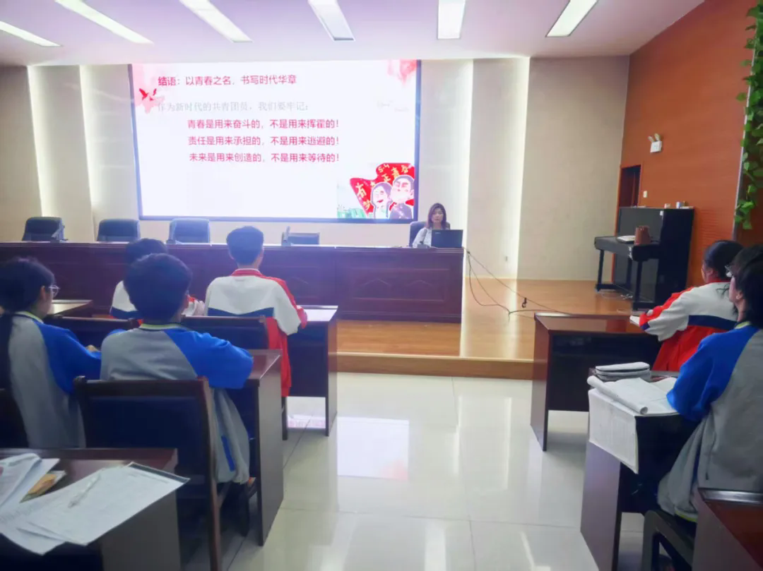 为深入贯彻习近平总书记关于青年工作的重要思想,引导团员青年以榜样力量践行时代使命,5月29日,亳州十八中举办“以青春之名,担时代之责——从王兴兴事迹看新时代团员的使命与担当”主题团课。团课由党员教师韩娟娟主讲,全体入团积极分子参加了学习。