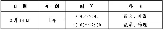 8月14日上午7:40前进入考场,迟到考生禁止入场。