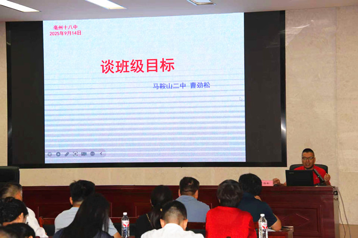 9月14日下午,亳州十八中在学校至真厅召开2025—2026学年第一次班主任工作例会。本次会议特邀马鞍山二中历史学科高级教师曹劲松进行班级管理经验分享。会议由副校长王素云主持,校长李俊出席会议并讲话。