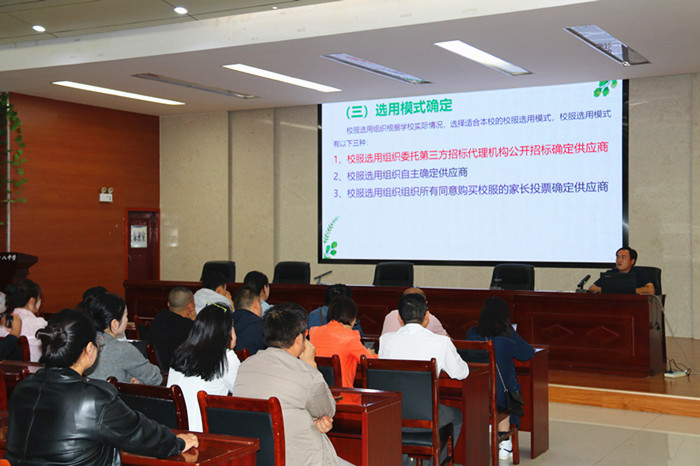 会议伊始,张震介绍了本次校服选用工作的背景与总体原则,强调以“安全舒适、美观大方、符合学生身心发展特点”为首要目标,严格遵循公开、公平、公正的选用程序。他就校服款式、价格区间、质量要求、采购流程及选用模式等作了详细说明,并就选用模式征求了与会家长代表的意见和建议。