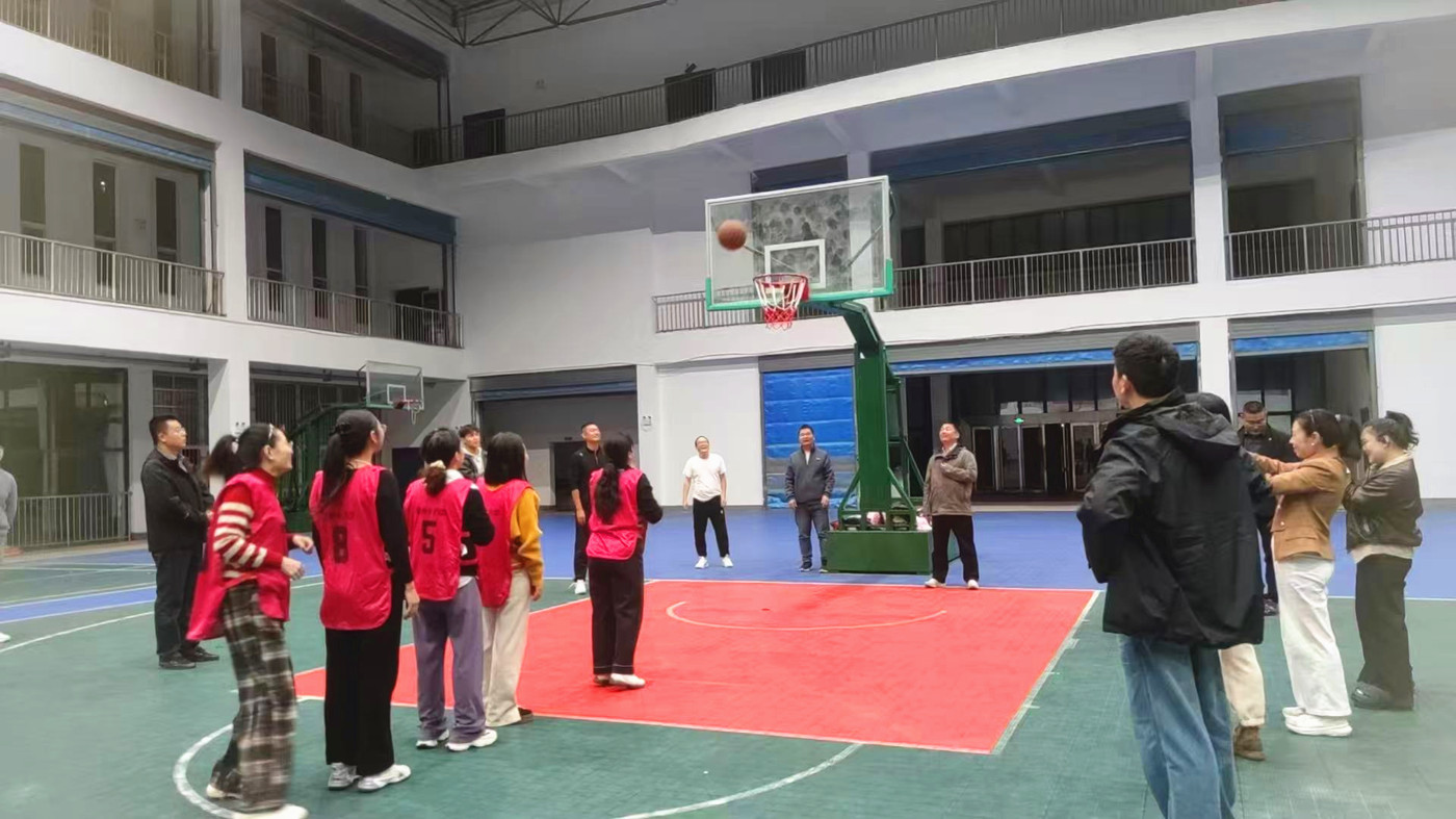 裁判哨声响起,男教职工队员们迅速进入状态。他们攻防有序、配合默契,抢断果敢、投篮精准,一次次精彩的瞬间引得观众掌声不断。中场休息时,女教职工队员登场亮相,凝神瞄准、稳定投射,每一粒进球都赢得师生阵阵喝彩。赛场气氛持续升温,展现出教职工们昂扬向上的精神风貌。