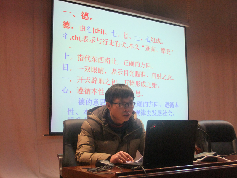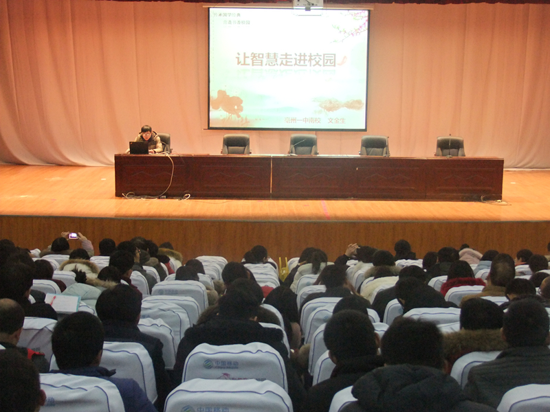 12月26日下午,亳州一中南校师德大讲堂继续在学校至美厅开讲。主讲人为学校语文组高级教师文金生老师。